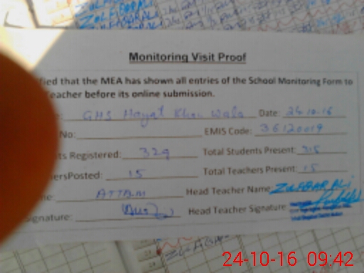 | Certified that this School was Inspected by the Undersigned MEA/DMO Today and the Information Stated Above is as Per Record. | |||||