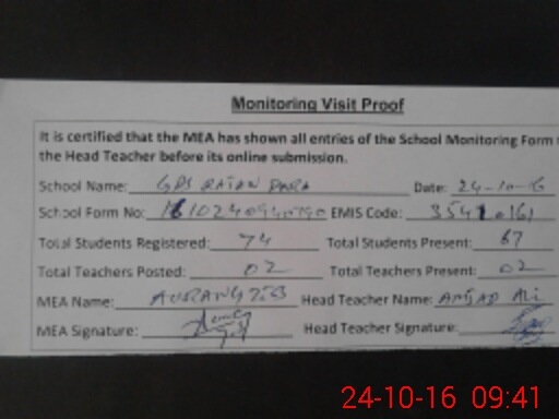 | Certified that this School was Inspected by the Undersigned MEA/DMO Today and the Information Stated Above is as Per Record. | |||||