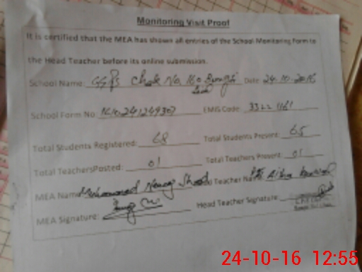 | Certified that this School was Inspected by the Undersigned MEA/DMO Today and the Information Stated Above is as Per Record. | |||||