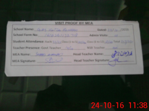 | Attendance Register | Head Teacher | MEA with School | Visit Proof |