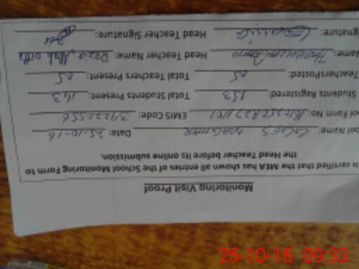 | Attendance Register | Head Teacher | MEA with School | Visit Proof |