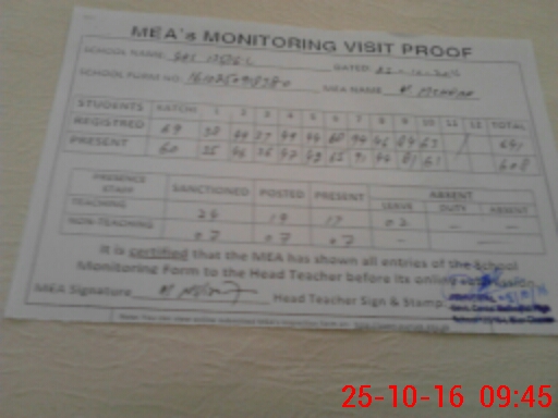 | Attendance Register | Head Teacher | MEA with School | Visit Proof |