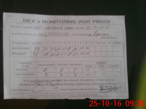 | Certified that this School was Inspected by the Undersigned MEA/DMO Today and the Information Stated Above is as Per Record. | |||||