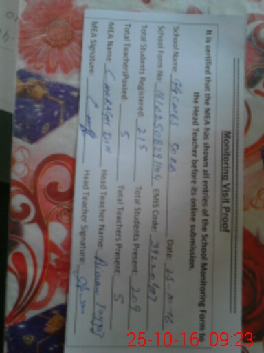 | Certified that this School was Inspected by the Undersigned MEA/DMO Today and the Information Stated Above is as Per Record. | |||||