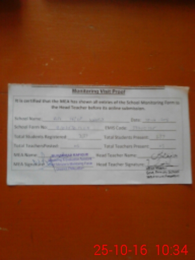 | Attendance Register | Head Teacher | MEA with School | Visit Proof |