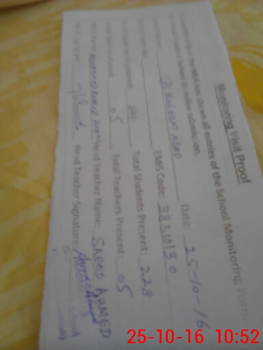 | Certified that this School was Inspected by the Undersigned MEA/DMO Today and the Information Stated Above is as Per Record. | |||||