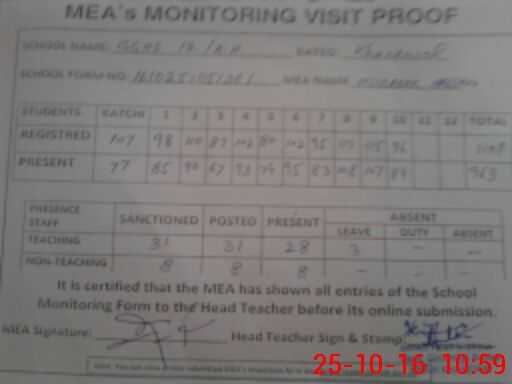 | Certified that this School was Inspected by the Undersigned MEA/DMO Today and the Information Stated Above is as Per Record. | |||||