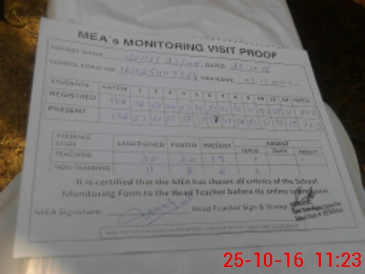 | Attendance Register | Head Teacher | MEA with School | Visit Proof |