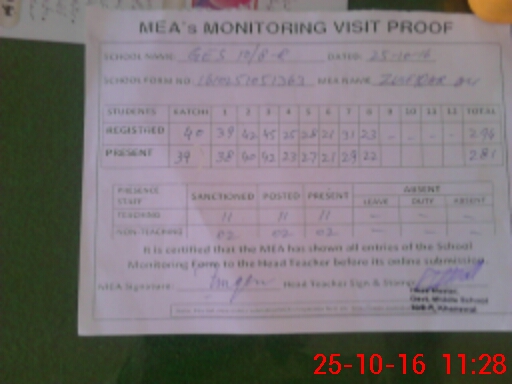 | Certified that this School was Inspected by the Undersigned MEA/DMO Today and the Information Stated Above is as Per Record. | |||||