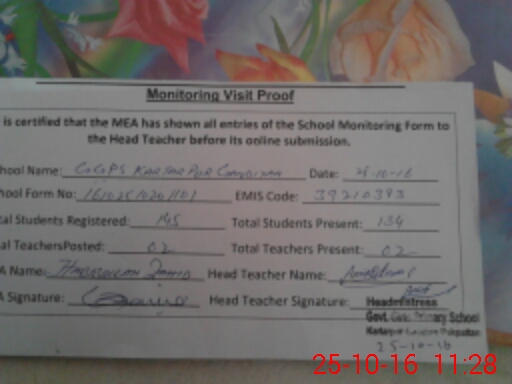 | Attendance Register | Head Teacher | MEA with School | Visit Proof |