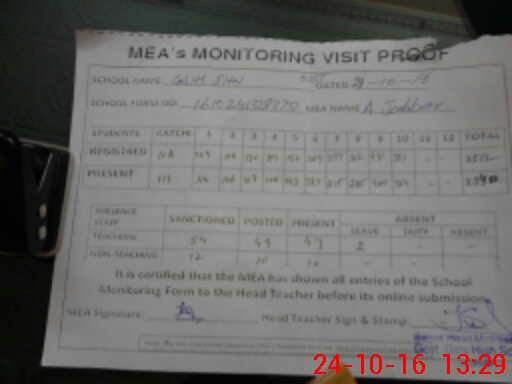 | Attendance Register | Head Teacher | MEA with School | Visit Proof |