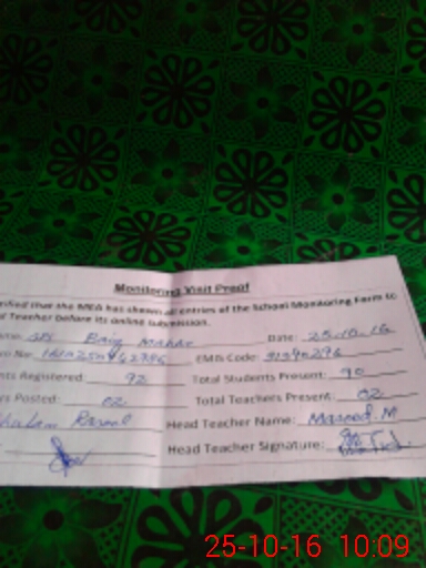 | Attendance Register | Head Teacher | MEA with School | Visit Proof |