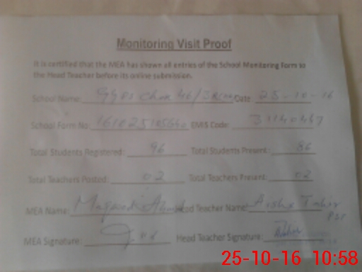 | Certified that this School was Inspected by the Undersigned MEA/DMO Today and the Information Stated Above is as Per Record. | |||||