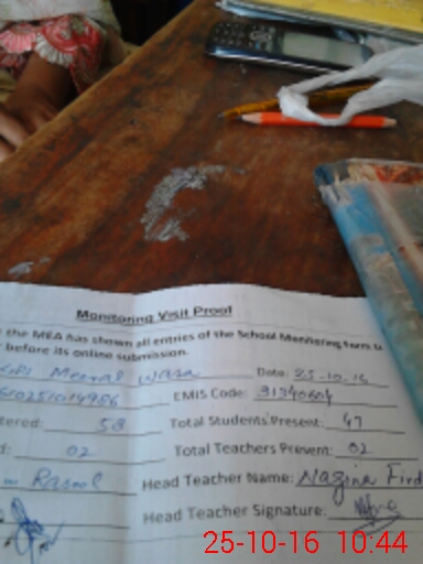 | Attendance Register | Head Teacher | MEA with School | Visit Proof |