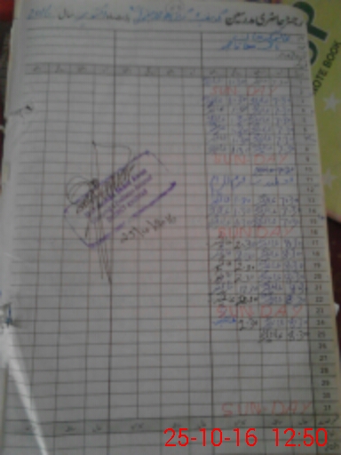 | CNIC | Full Name | Designation | R/C | Absence During Last Calender Month |