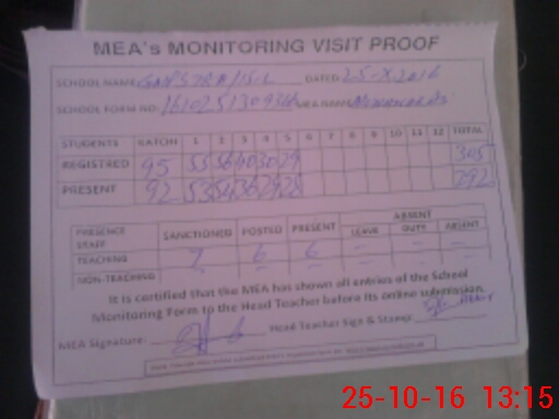 | Certified that this School was Inspected by the Undersigned MEA/DMO Today and the Information Stated Above is as Per Record. | |||||