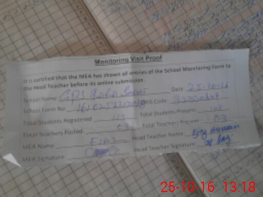 | EMIS Code: 32330649 | Name of School: GPS BARA SADAT | |||