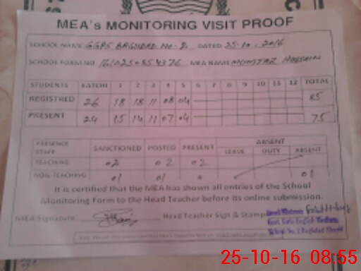 | Certified that this School was Inspected by the Undersigned MEA/DMO Today and the Information Stated Above is as Per Record. | |||||