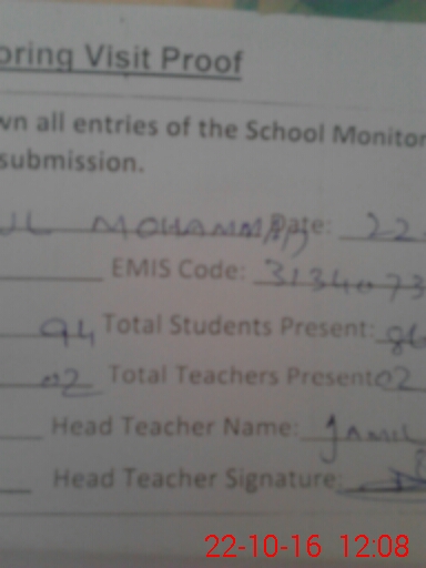 | EMIS Code: 31340731 | Name of School: GPS GUL MUHAMMAD MOHANA | |||