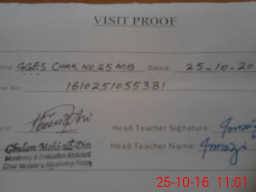 | EMIS Code: 38230879 | Name of School: GGES CHAK NO. 25 MB | |||