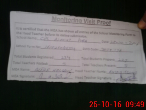| Certified that this School was Inspected by the Undersigned MEA/DMO Today and the Information Stated Above is as Per Record. | |||||