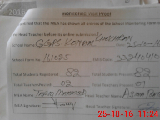| Certified that this School was Inspected by the Undersigned MEA/DMO Today and the Information Stated Above is as Per Record. | |||||