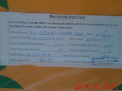 | EMIS Code: 35430377 | Name of School: GPS DERA ALI ABAS SHAH | |||