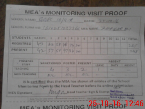 | Certified that this School was Inspected by the Undersigned MEA/DMO Today and the Information Stated Above is as Per Record. | |||||