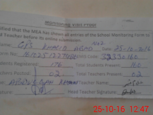 | EMIS Code: 32330160 | Name of School: GES KHALID ABAD NO 2 | |||