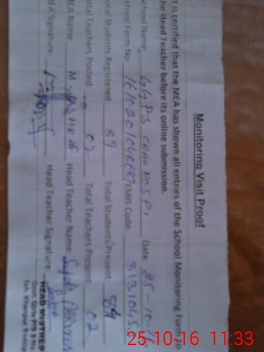 | Attendance Register | Head Teacher | MEA with School | Visit Proof |