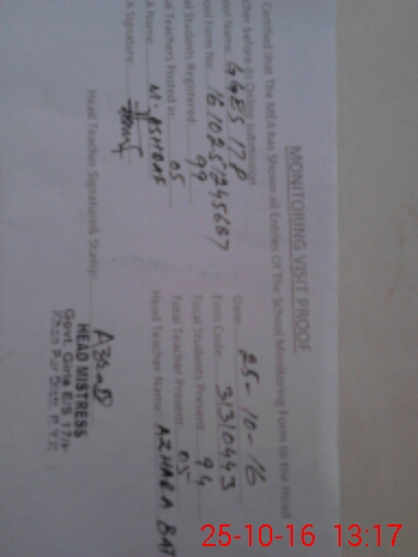 | Certified that this School was Inspected by the Undersigned MEA/DMO Today and the Information Stated Above is as Per Record. | |||||