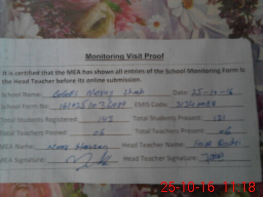 | EMIS Code: 31340088 | Name of School: GGES MERAY SHAH | |||