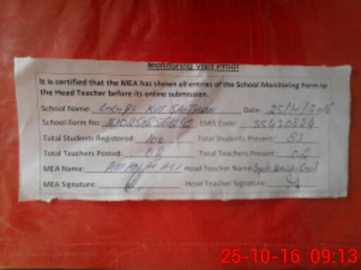 | Certified that this School was Inspected by the Undersigned MEA/DMO Today and the Information Stated Above is as Per Record. | |||||