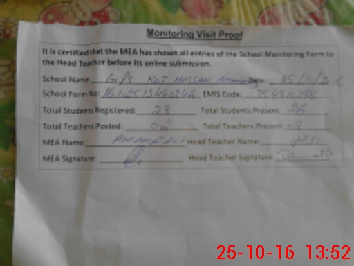 | EMIS Code: 35430398 | Name of School: GPS DERA HASSAN MUHAMMAD | |||