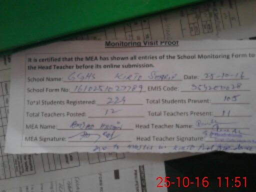 | Attendance Register | Head Teacher | MEA with School | Visit Proof |