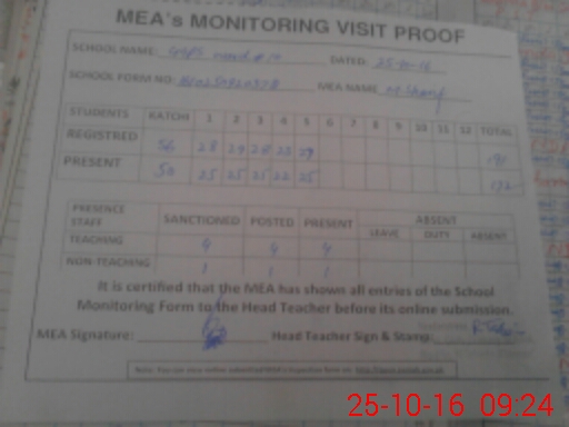 | Certified that this School was Inspected by the Undersigned MEA/DMO Today and the Information Stated Above is as Per Record. | |||||