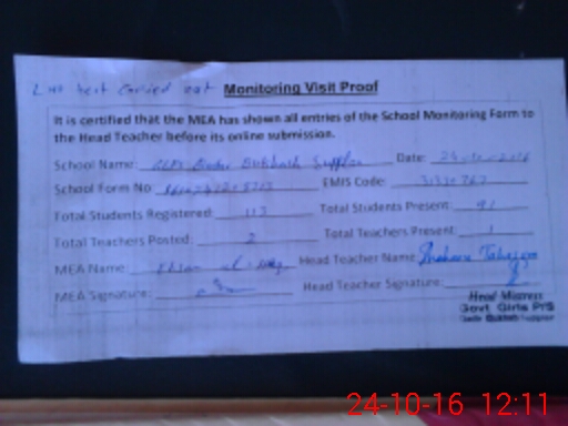 | Certified that this School was Inspected by the Undersigned MEA/DMO Today and the Information Stated Above is as Per Record. | |||||