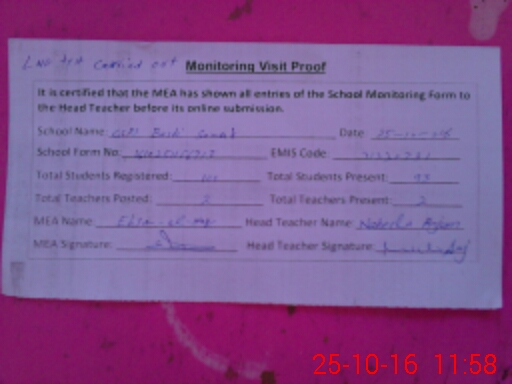 | Attendance Register | Head Teacher | MEA with School | Visit Proof |