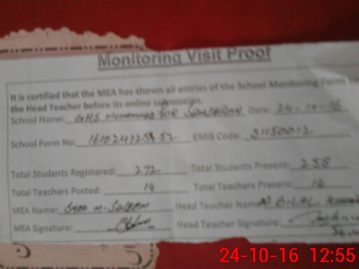 | Attendance Register | Head Teacher | MEA with School | Visit Proof |