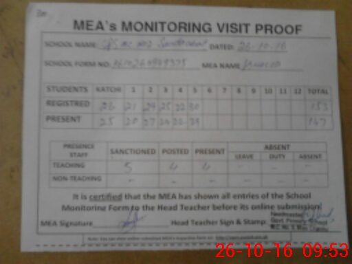 | Attendance Register | Head Teacher | MEA with School | Visit Proof |