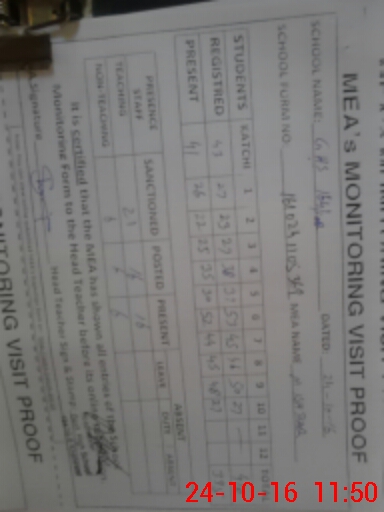 | Certified that this School was Inspected by the Undersigned MEA/DMO Today and the Information Stated Above is as Per Record. | |||||