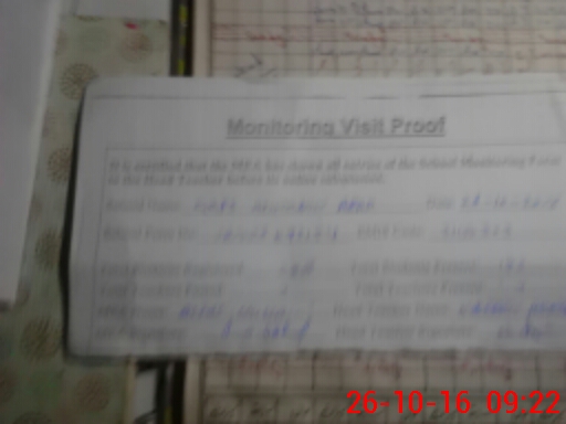 | Monitoring Date: 26-10-2016 | Start Time: 26-10-2016 08:52 AM | End Time: 26-10-2016 09:23 AM | Name of MEA: Al**** Hu**** BN**** | |