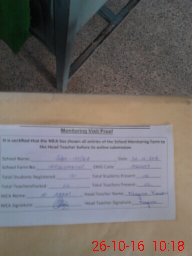| Attendance Register | Head Teacher | MEA with School | Visit Proof |