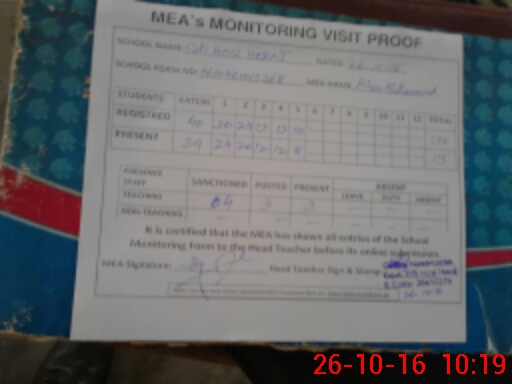 | Attendance Register | Head Teacher | MEA with School | Visit Proof |