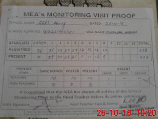 | Certified that this School was Inspected by the Undersigned MEA/DMO Today and the Information Stated Above is as Per Record. | |||||