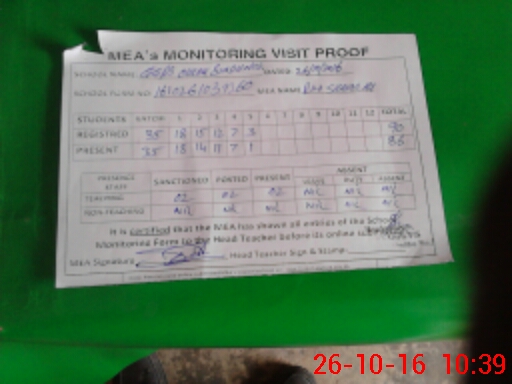 | Attendance Register | Head Teacher | MEA with School | Visit Proof |