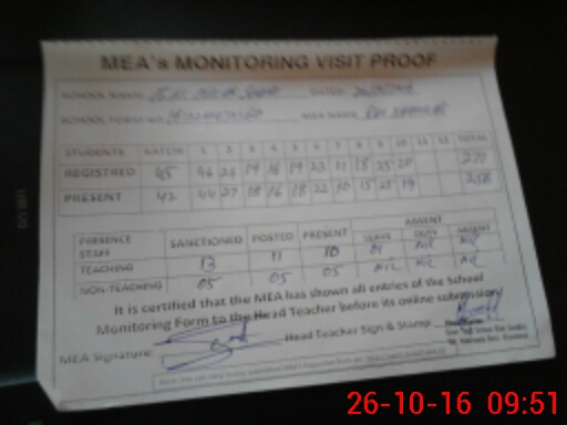 | Certified that this School was Inspected by the Undersigned MEA/DMO Today and the Information Stated Above is as Per Record. | |||||
