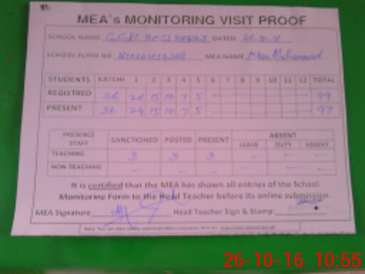 | Certified that this School was Inspected by the Undersigned MEA/DMO Today and the Information Stated Above is as Per Record. | |||||