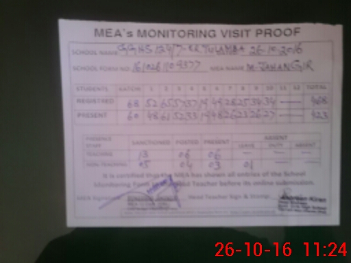 | Certified that this School was Inspected by the Undersigned MEA/DMO Today and the Information Stated Above is as Per Record. | |||||