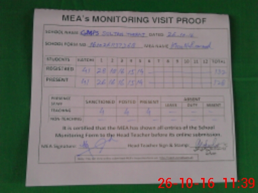 | Attendance Register | Head Teacher | MEA with School | Visit Proof |